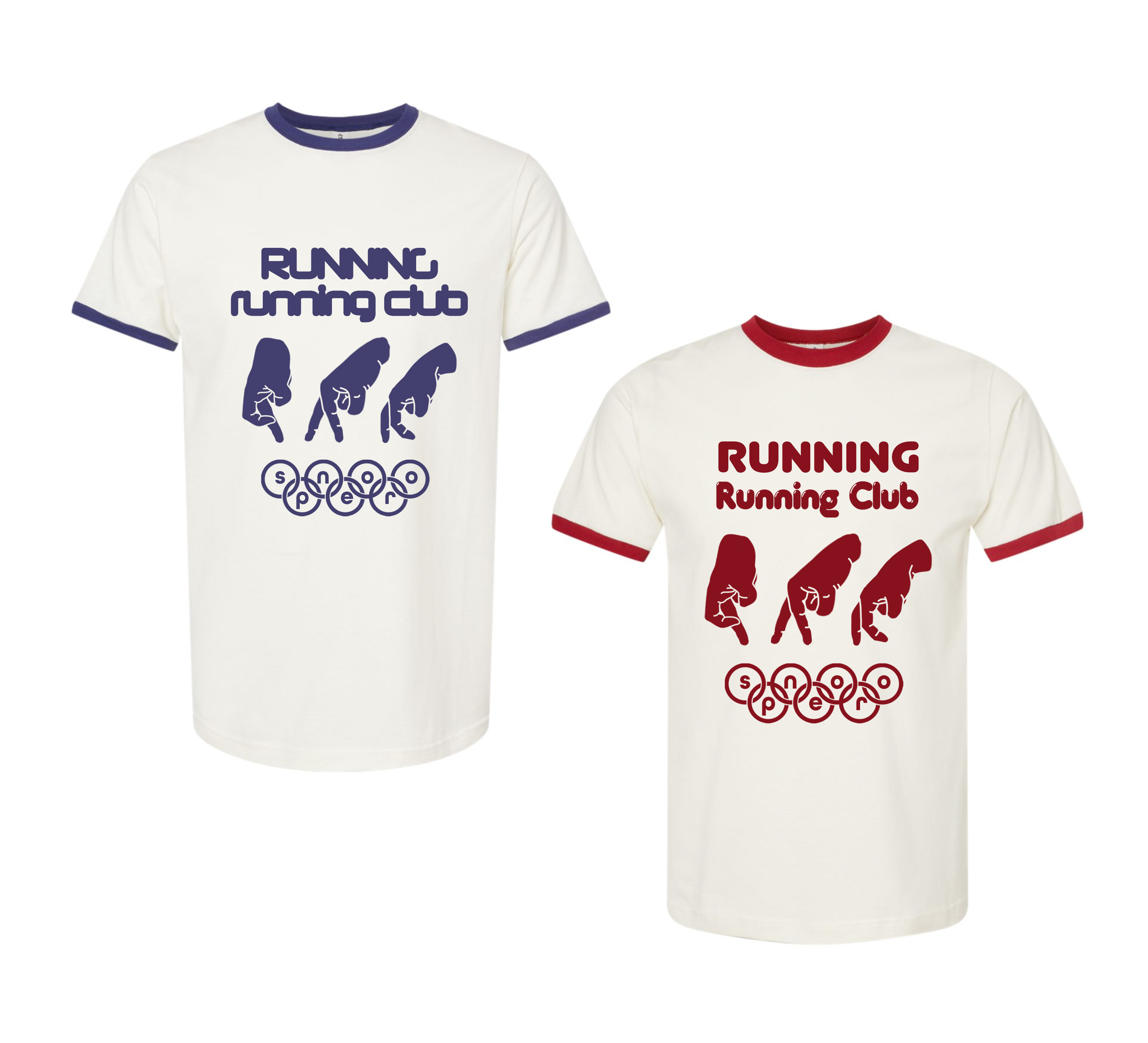 Pixelated logo and merch for 2023 west coast tour and running club shirt for Europe summer 2024 tour
